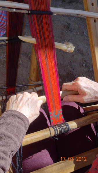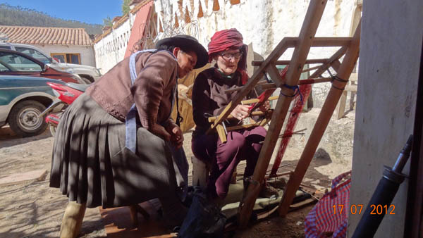 Pour Sophie Desrosiers ce retour en Bolivie trente ans après son premier séjour dans ce pays avait, entre autres buts, de travailler avec une tisserande traditionnelle. Travaux précis, longs, inscrits dans des traditions centenaires par opposition aux nombreux tissus que chacun peut trouver dans les boutiques de Sucre ou de La Paz mais très souvent réalisés industriellement.